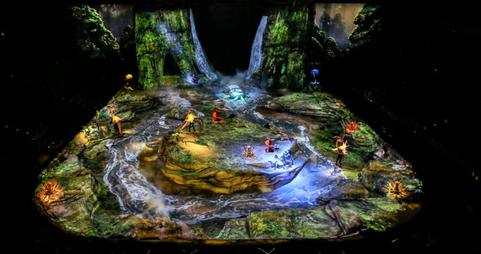 The staging of "Toruk" immerses audiences in a breathtaking world of Pandora, created through a harmonious blend of innovative set design, stunning visuals, and dynamic projections. Inspired by James Cameron’s "Avatar", the production transports viewers to a vibrant, otherworldly landscape, where every element from towering structures to projected streams serves to deepen the sense of wonder and exploration. The stage is designed to transform seamlessly, utilizing cutting-edge technology, aerial movement, and immersive visuals to evoke the lush, luminous environment of Pandora. This theatrical environment invites audiences to experience a mesmerizing journey that fuses storytelling, spectacle, and artistry in a celebration of nature, technology, and imagination.
